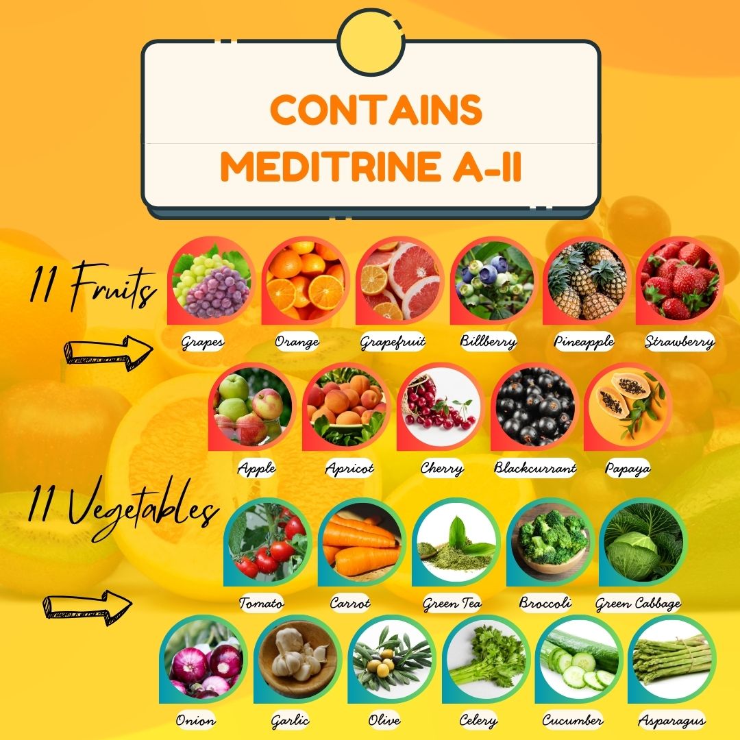 Meditrine A-11™ Blend (11 fruits + 11 vegetables extract) rich in: